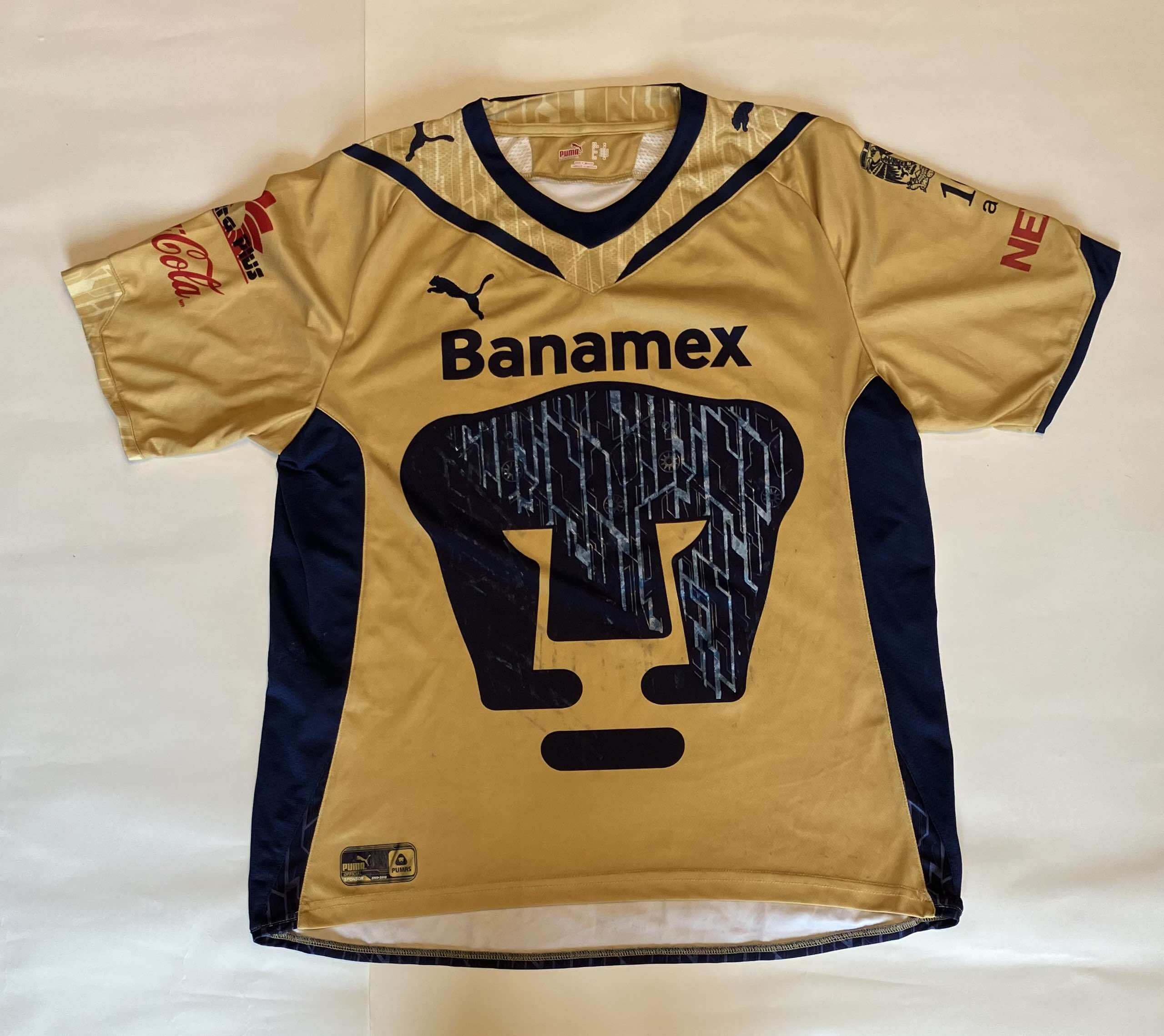 メキシコシティに本拠地をおくクラブ・ウニベルシダ・ナシオナル、通称PUMASのユニフォームです。UNAM(メキシコ国立自治大学)を母体としたクラブで、1954年に創設、クラブカラーは青と金(Azul y Oro)。ウーゴ・サンチェスやホルヘ・カンポスなどが在籍したことでも知られています。